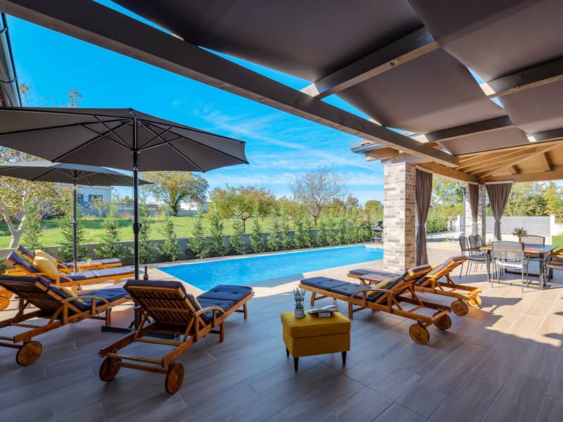 Die Villa bietet nicht nur Luxus und Komfort, sondern auch völlige Privatsphäre, umgeben von Grün, das ein Gefühl völliger Entspannung schafft. Gleichzeitig sind schöne Strände nur wenige Minuten mit dem Auto entfernt – perfekt zum Schwimmen, Sonnenbaden und für Wassersport – sowie bekannte Orte wie Pula mit ihrem römischen Amphitheater, Rovinj mit seiner charmanten Altstadt und Fažana, dem Tor zum Nationalpark Brijuni.