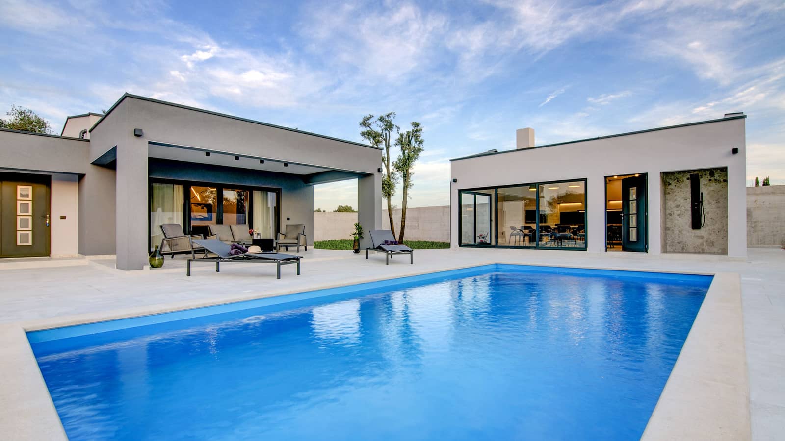 Die Villa bietet zwei geräumige Schlafzimmer, jedes mit eigenem Bad, und ein zusätzliches Badezimmer für zusätzlichen Komfort der Gäste. Im Außenbereich befindet sich ein privater Pool, ideal zum Entspannen und Sonnenbaden. Außerdem gibt es eine Außenküche mit Grill und einen großzügigen Essbereich, perfekt für gemeinsame Mahlzeiten in schöner Atmosphäre.