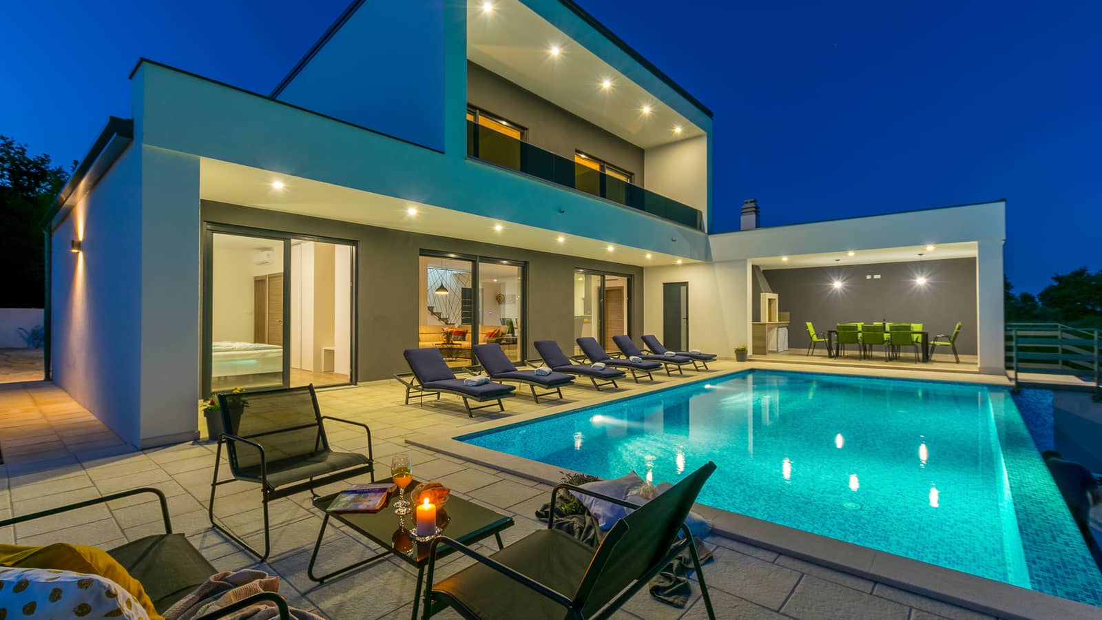 Die Villa Ninna liegt in der Nähe der historischen Stadt Svetvinčenat und ist die ideale Wahl für einen Familienurlaub oder einen privaten Rückzugsort. Diese moderne Villa mit drei Schlafzimmern und vier Bädern bietet Luxus und Komfort für bis zu sechs Personen. Jedes Schlafzimmer verfügt über ein eigenes Bad, und das Innere ist hell und elegant eingerichtet, wodurch ein wohnliches Ambiente entsteht.