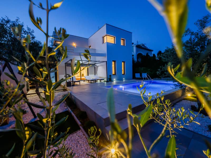 Die Villa Marina ist eine elegante Villa mit Pool, nur wenige Fahrminuten vom Zentrum von Trogir entfernt. Die Villa erstreckt sich über zwei Etagen und bietet vier geräumige Schlafzimmer, jeweils mit eigenem Bad und Klimaanlage, was maximalen Komfort für die ganze Familie gewährleistet. Im Erdgeschoss befindet sich ein gemütliches Wohnzimmer, verbunden mit einer voll ausgestatteten Küche sowie einem Freizeit- und Unterhaltungsbereich.
