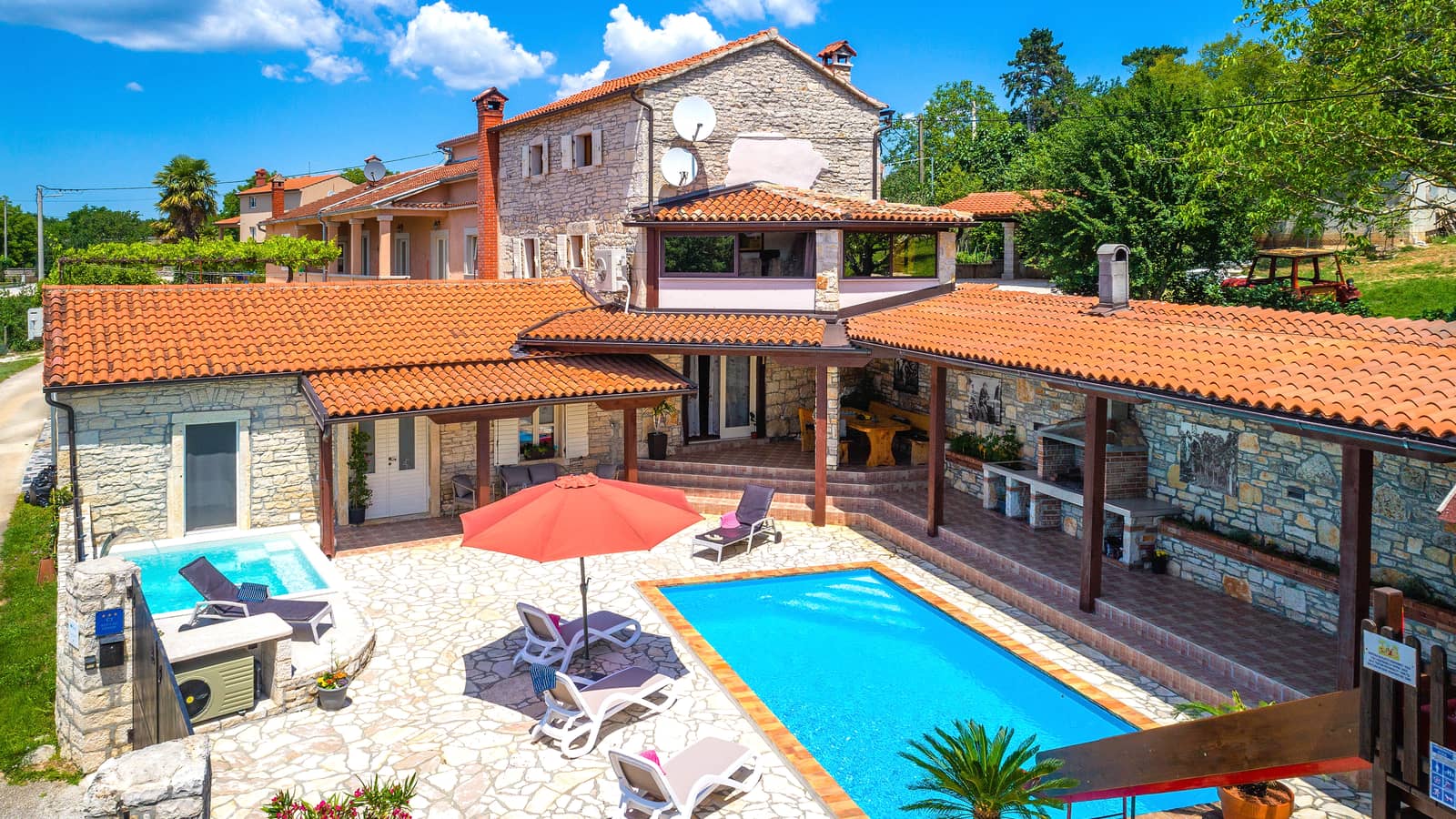 Located in the heart of central Istria, Villa Antoli offers the perfect blend of rustic charm and comfort. This traditional stone villa, with wooden details and exposed beams, exudes the warmth of home. Enjoy the cozy atmosphere with a fireplace, while the spacious outdoor area invites you to relax and enjoy nature. The villa has four bedrooms and five bathrooms, providing comfortable accommodation for up to 10 guests.