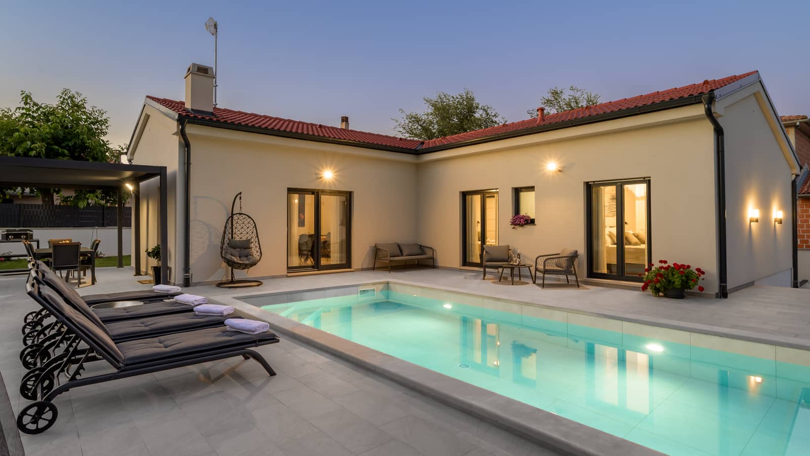 Located in the Istrian village of Pačići, Villa Suri is the perfect choice for a family holiday. The single-story villa is modernly furnished and accommodates up to 6 guests, offering comfort and privacy with three bedrooms, each with its own bathroom.