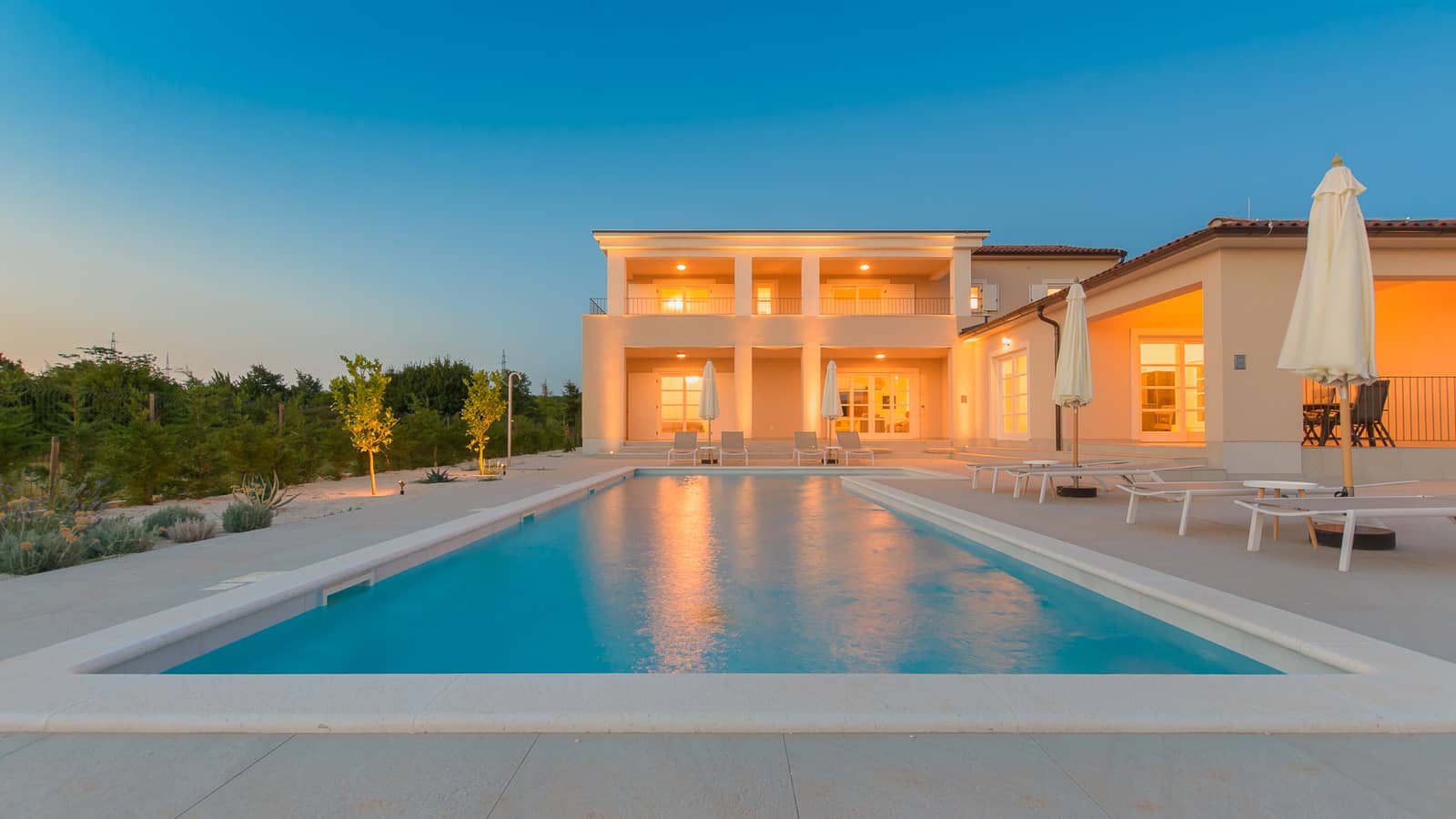 Villa Luna is located in the small Istrian village of Smoljanci in central Istria, near the historic town of Svetvinčent. The rural setting offers privacy, and the villa’s luxurious ambiance provides everything you need for a relaxing holiday. The villa is a perfect choice for a family getaway – surrounded by nature, with a large garden and a private heated pool, it guarantees a place to unwind for the whole family.