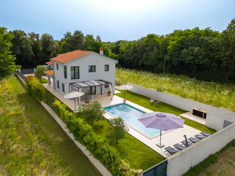 Posebna vrijednost ove vile je veliki vanjski dio s privatnim bazenom površine 36 m². Ovdje se možete osvježiti, sunčati na udobnim ležaljkama ili uživati u obrocima na otvorenom uz bazen. Vanjska blagovaonica i uređeni okoliš stvaraju idealan ambijent za opuštanje i druženje.
