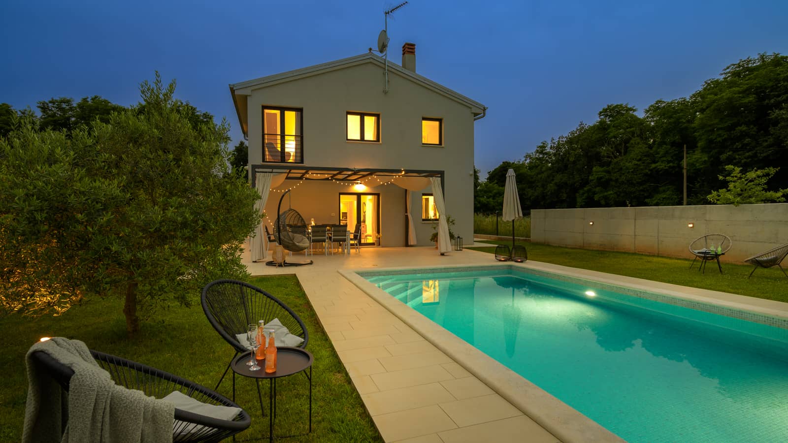 Dobrodošli u Vilu Sain, moderan i elegantan dom smješten u istarskom selu Marčana. Ova suvremena vila oduševljava profinjenim dizajnom interijera i pažljivo osmišljenim detaljima, pružajući savršen spoj udobnosti, stila i opuštene atmosfere za vaš idealan odmor.