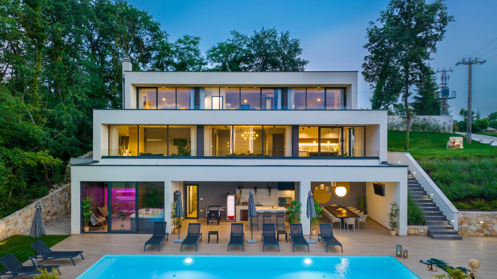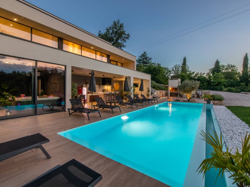 Ako želite jedinstveni odmor u luksuznoj kući u Istri, Vila Dolina je idealan izbor! Smještena u malom istarskom selu Šivati, vila nudi privatnost i opuštanje za cijelu obitelj. Ispred kuće nalazi se veliki bazen (52 m²) s ležaljkama i prostorom za sunčanje, dok sauna i jacuzzi osiguravaju dodatnu dozu luksuza.