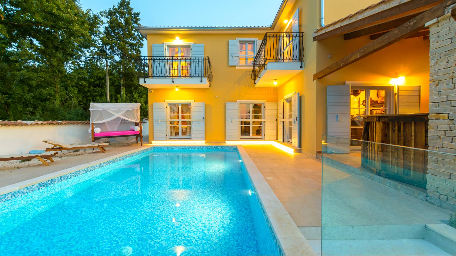 Gostima su na raspolaganju 4 spavaće sobe, svaka sa vlastitom kupaonicom, opremljena kuhinja, prostrani dnevni boravak i prekrasna terasa uz bazen, idealna za opuštanje tijekom dana. Vila je odlična polazna točka za aktivan odmor, jer su gotovo sve plaže u Istri udaljene samo 20 minuta vožnje.