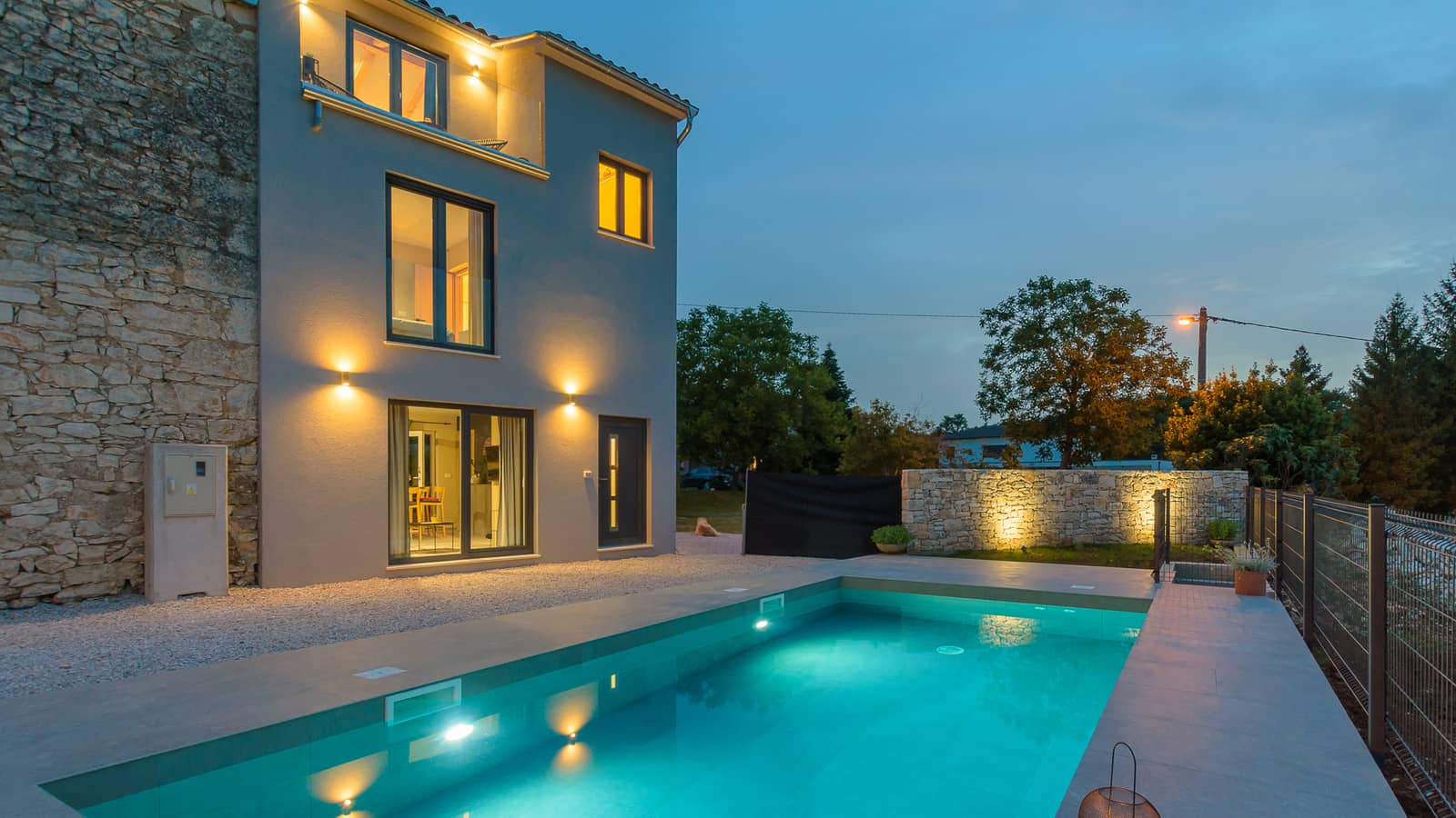 Kuća ima dvije spavaće sobe na katu, svaka s vlastitom kupaonicom. Dnevni boravak i kuhinja potpuno su opremljeni za udoban boravak, a dodatnu zabavu pružaju PlayStation PS4 s igrama i Kicker. Zaseban objekt uz vilu nudi opremljenu ljetnu kuhinju, idealnu za doručke ili obiteljska druženja na otvorenom.