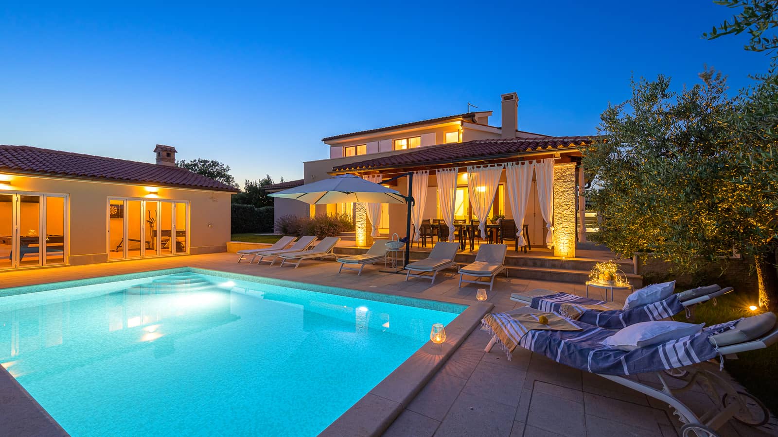Vanjski prostor ove vile pravi je raj za odmor i zabavu. Prostrani bazen u dvorištu poziva na osvježenje tijekom toplih ljetnih dana, dok vanjska blagovaonica nudi idealno mjesto za zajedničke obroke. Za dodatnu zabavu, pored bazena nalaze se stol za biljar, stolni nogomet i pikado, što će osigurati zabavu za sve uzraste i stvoriti veselu atmosferu.